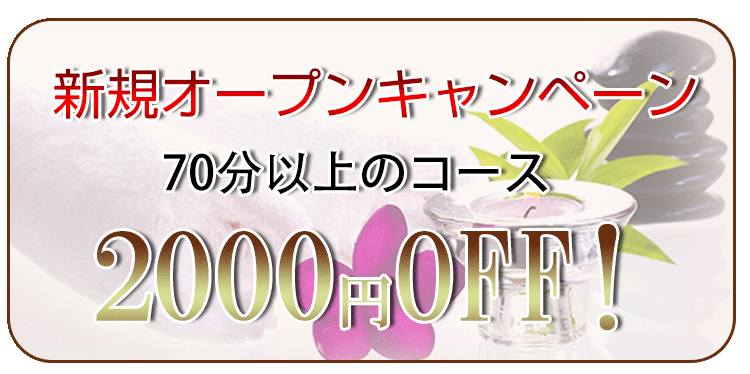 当店では、アロマオイルの効能と当店自慢のセラピストによるリンパマッサージの相乗効果による、癒しのひとときをお客様お一人お一人にお届けしております、自然で心やすらぐ優美な香りを、施術中はもちろんご帰宅お休みになってから翌日朝目覚めでまで楽しんで頂けます、どうぞゆっくりご堪能ください。